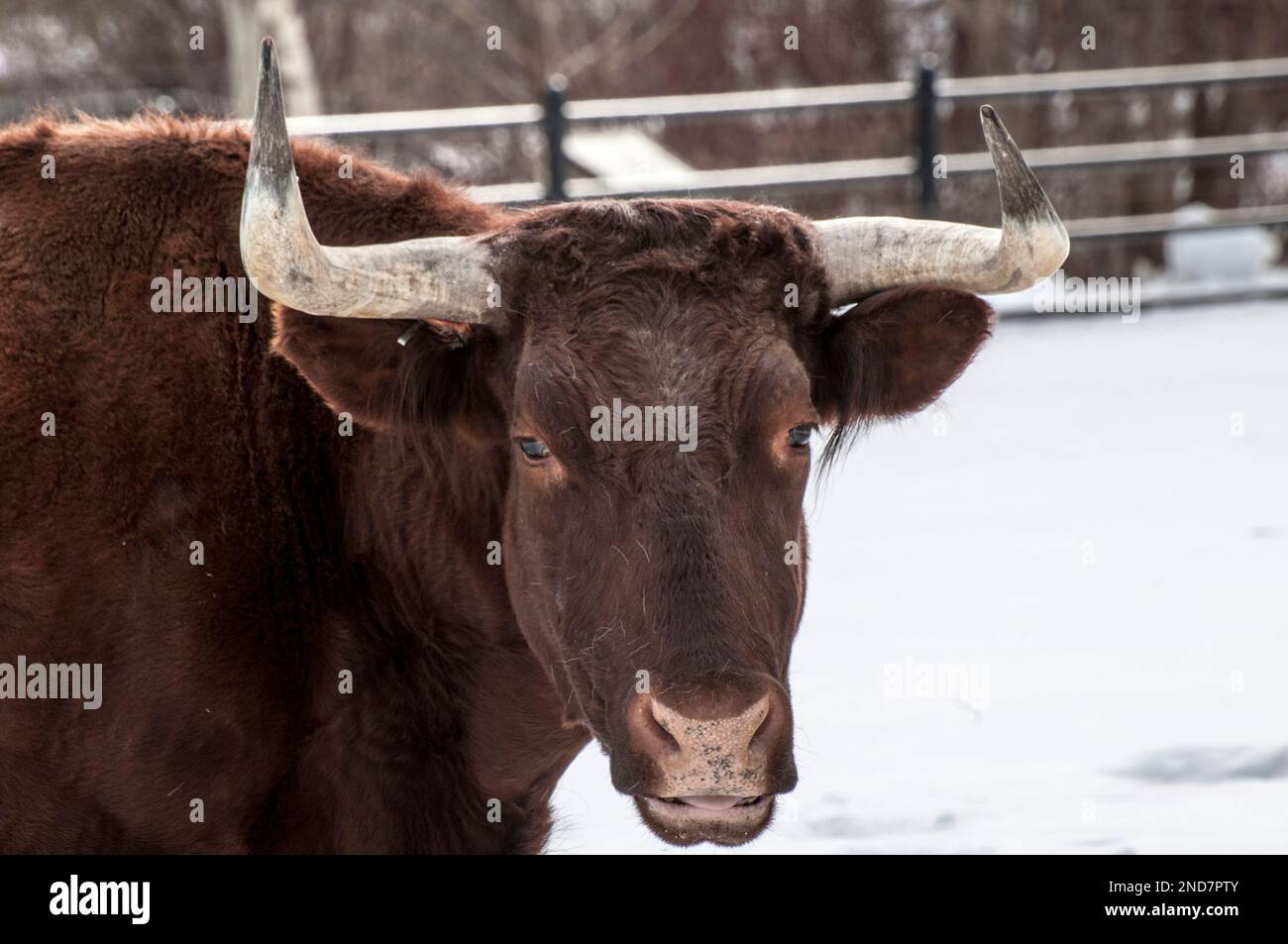 american milking devon oxen looking at camera close up Stock Photo Alamy