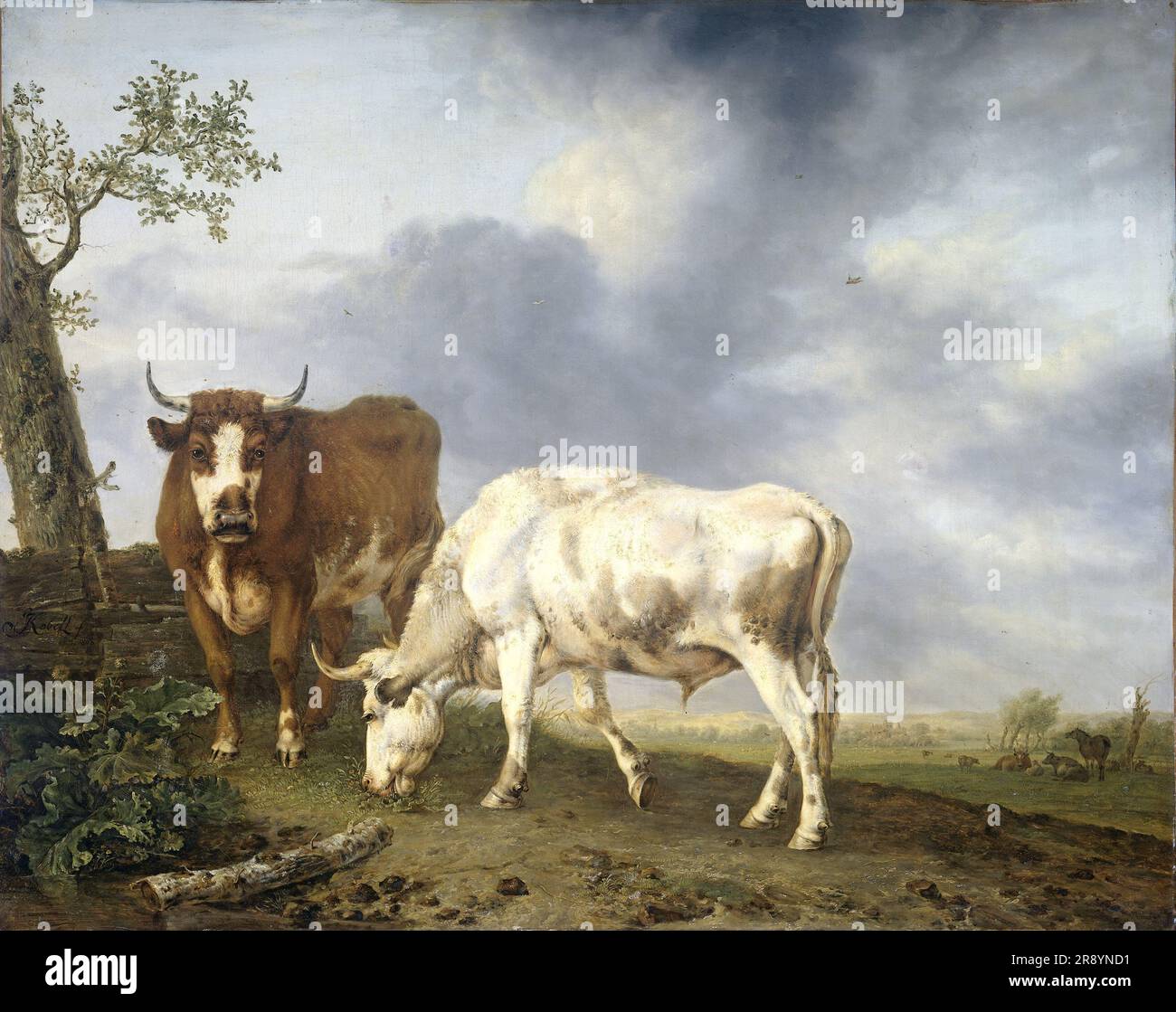 Two Oxen (1 brown face 1 white face) The Fur Trade two ox figures
