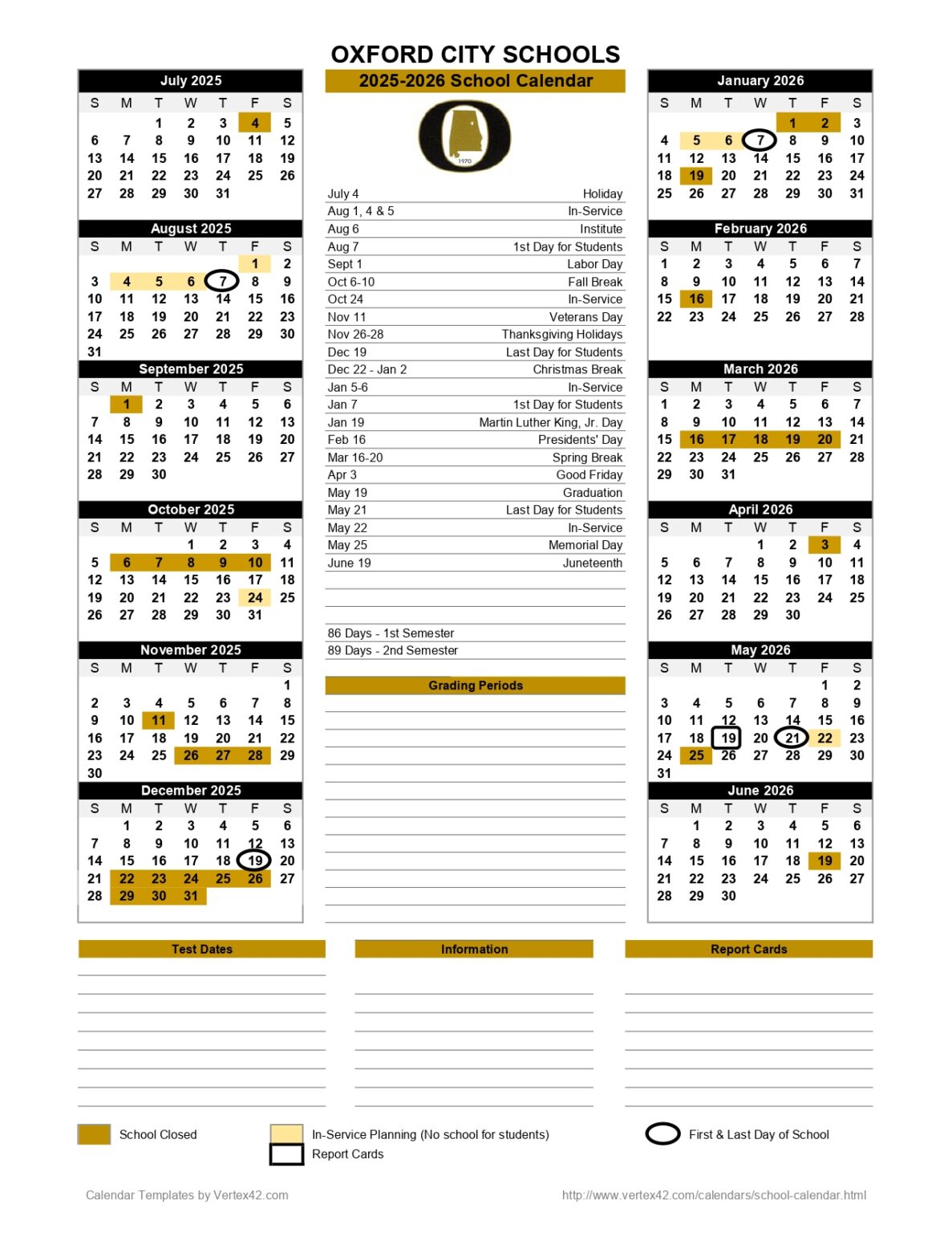 OXFORD CITY SCHOOLS AL 25 26 Calendar Revised PDF EduCounty