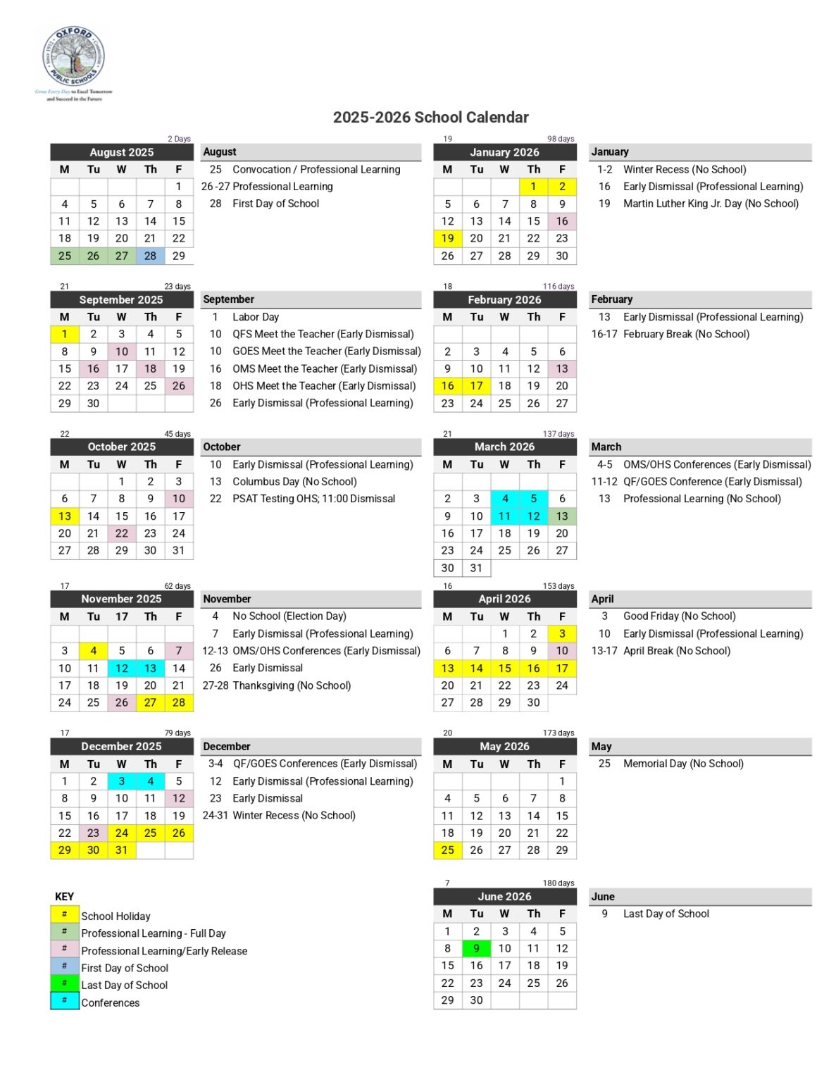 Oxford Elementary School Calendar 2025 Schoolcalendars net