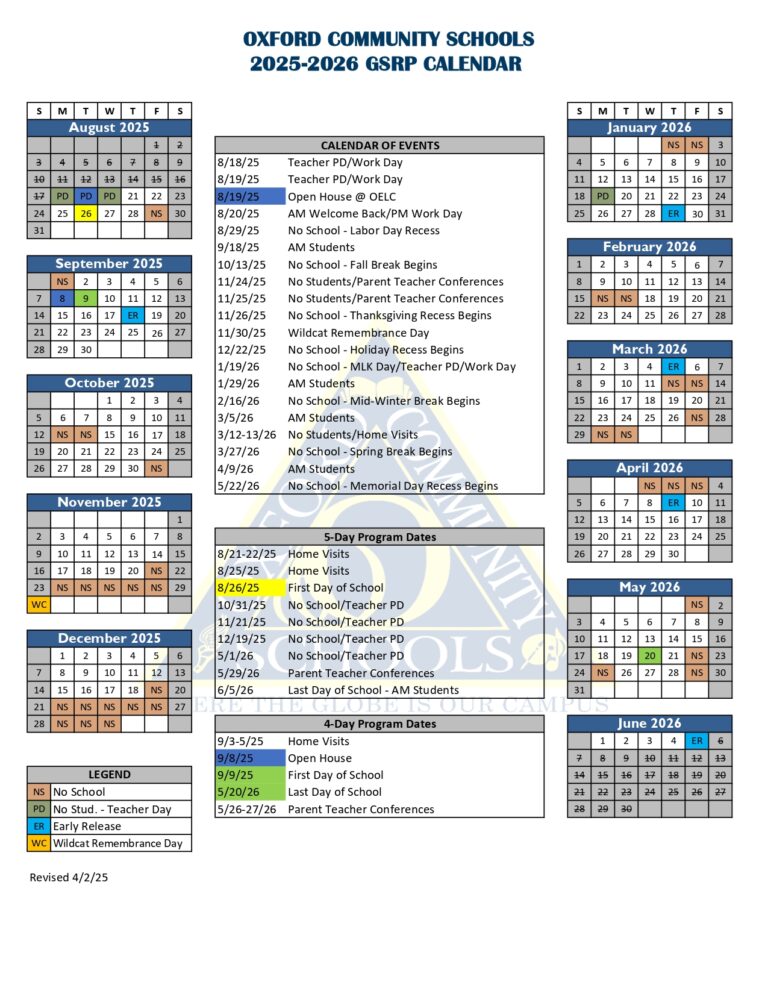Oxford Public Schools Calendar 25 26 Revised PDF EduCounty