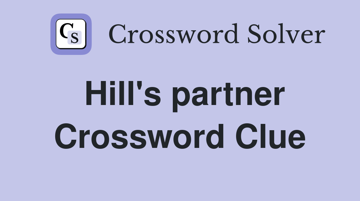 Hill #39 s partner Crossword Clue Answers Crossword Solver