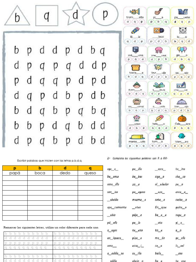 Ejercicio de lectoescritura: Diferenciación fonemas b d p q