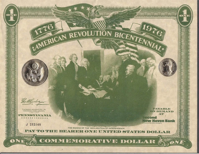 AMERICAN REVOLUTION BICENTENNIAL Commemorative Dollar Certificate PA
