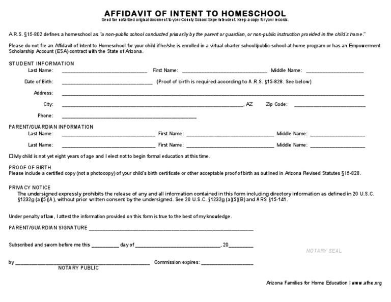 Homeschool Affidavit Form Pdf Fill Online Printable Fillable Blank