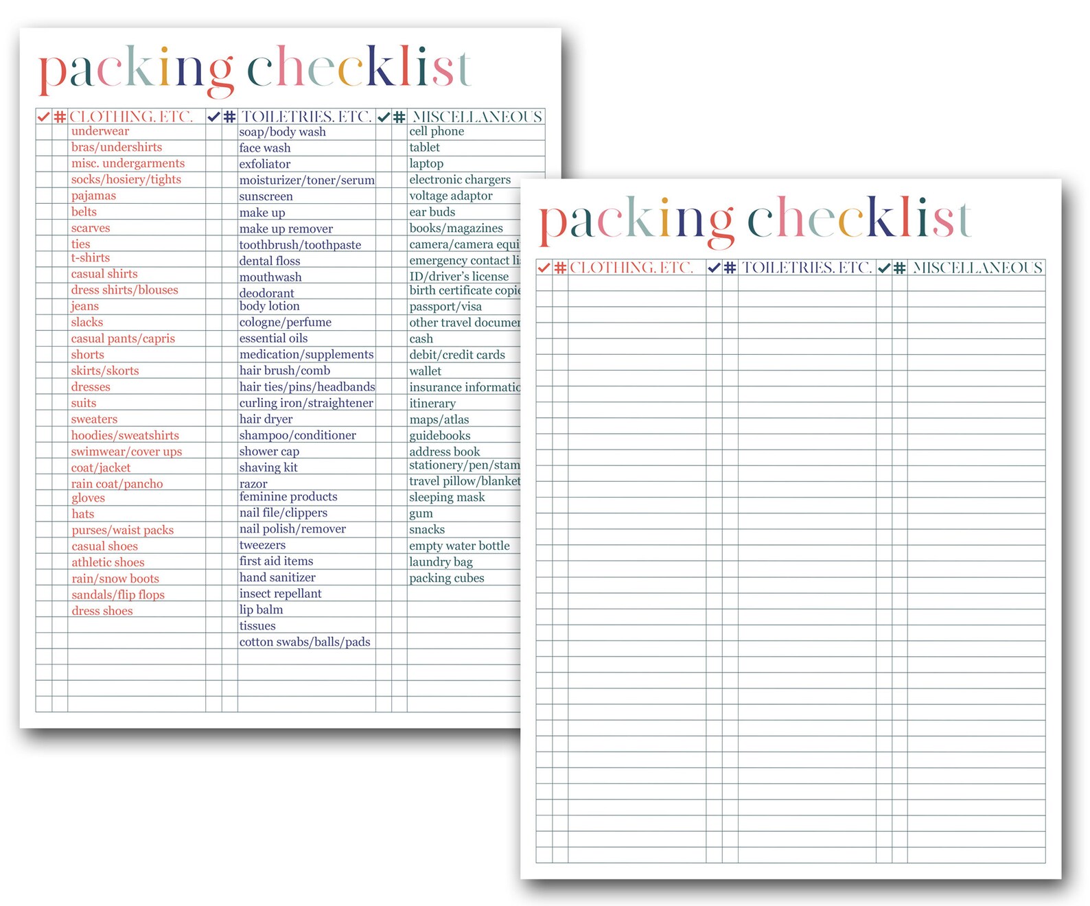 Free Printable Packing List Template Free download and print for you