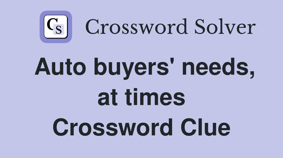 Auto buyers #39 needs at times Crossword Clue Answers Crossword Solver