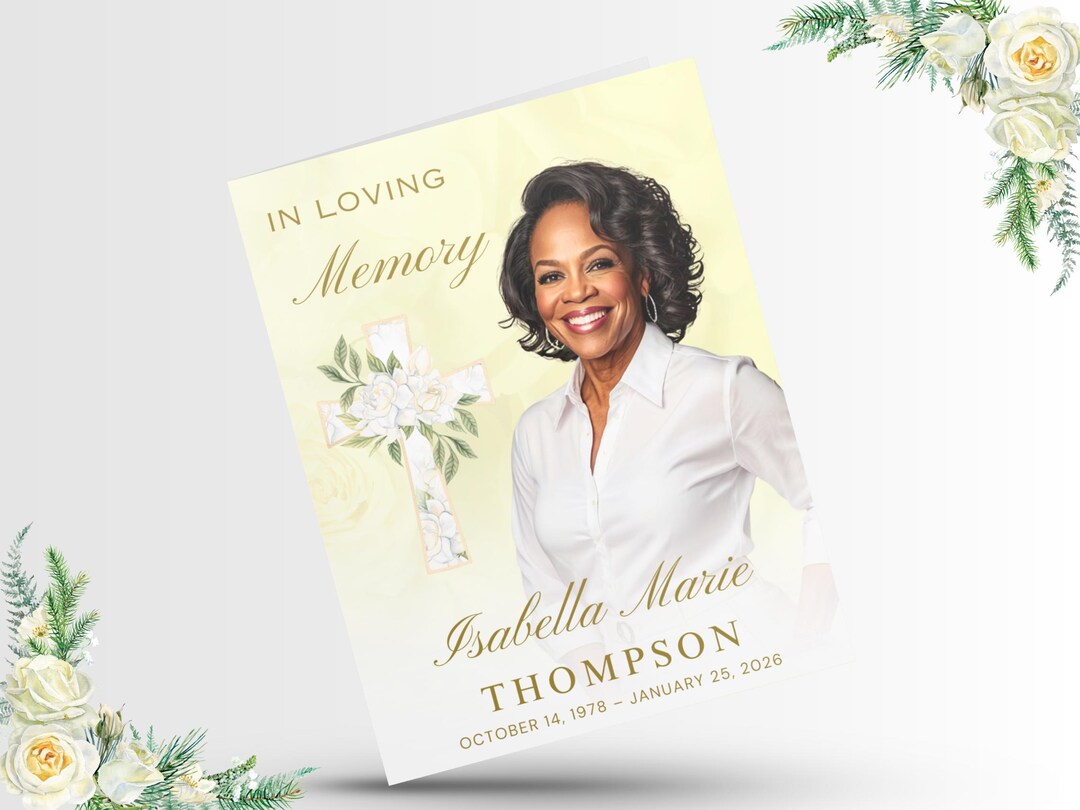 4 pages Funeral Program Template for Women or Men Folded Editable