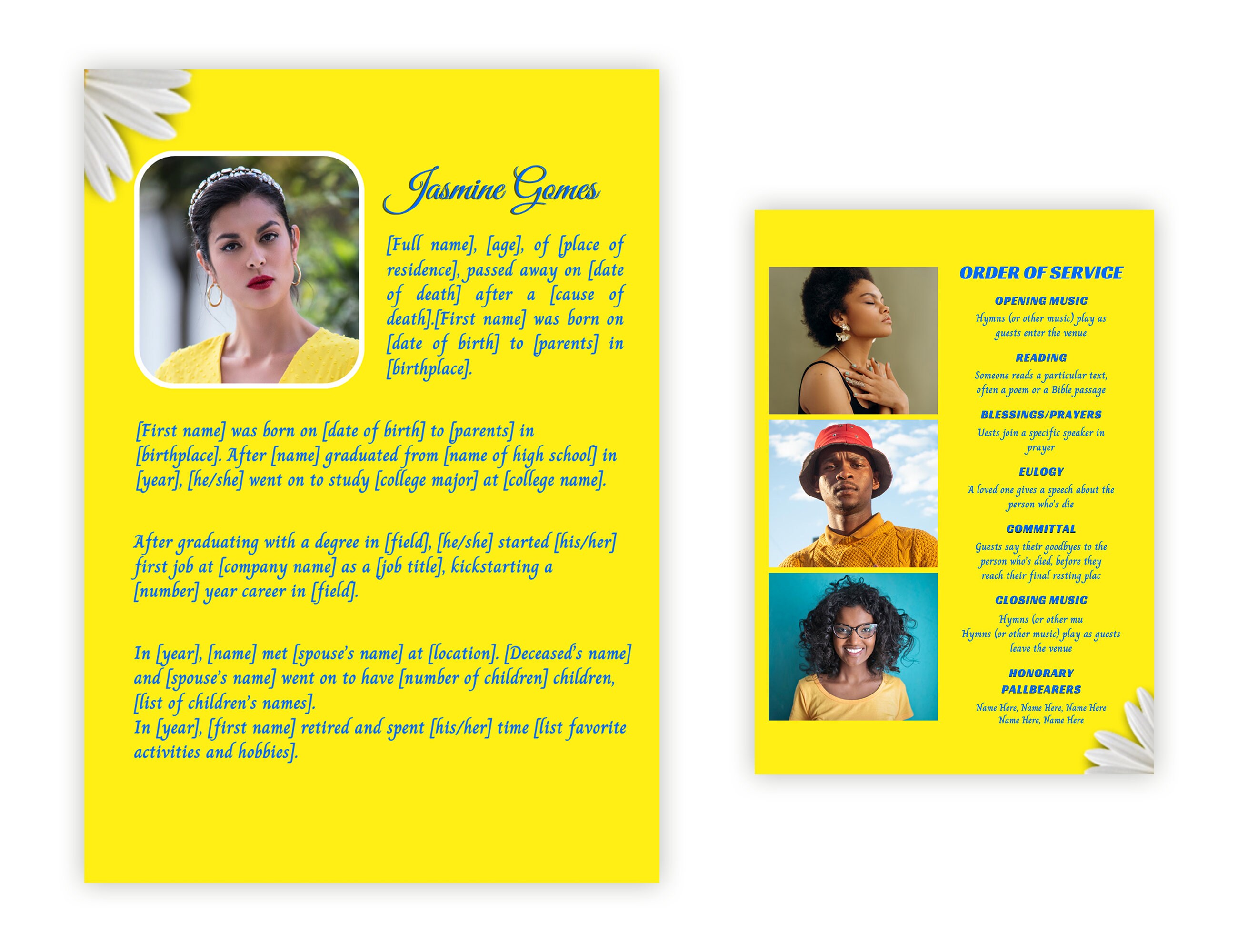4 Pages Funeral Program Template Editable in Canva Yellow Etsy