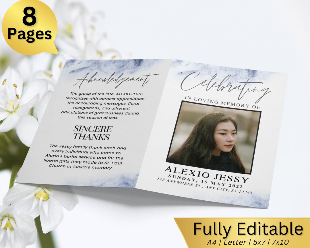 8 Pages Funeral Program Template Funeral Booklet Template Etsy Australia