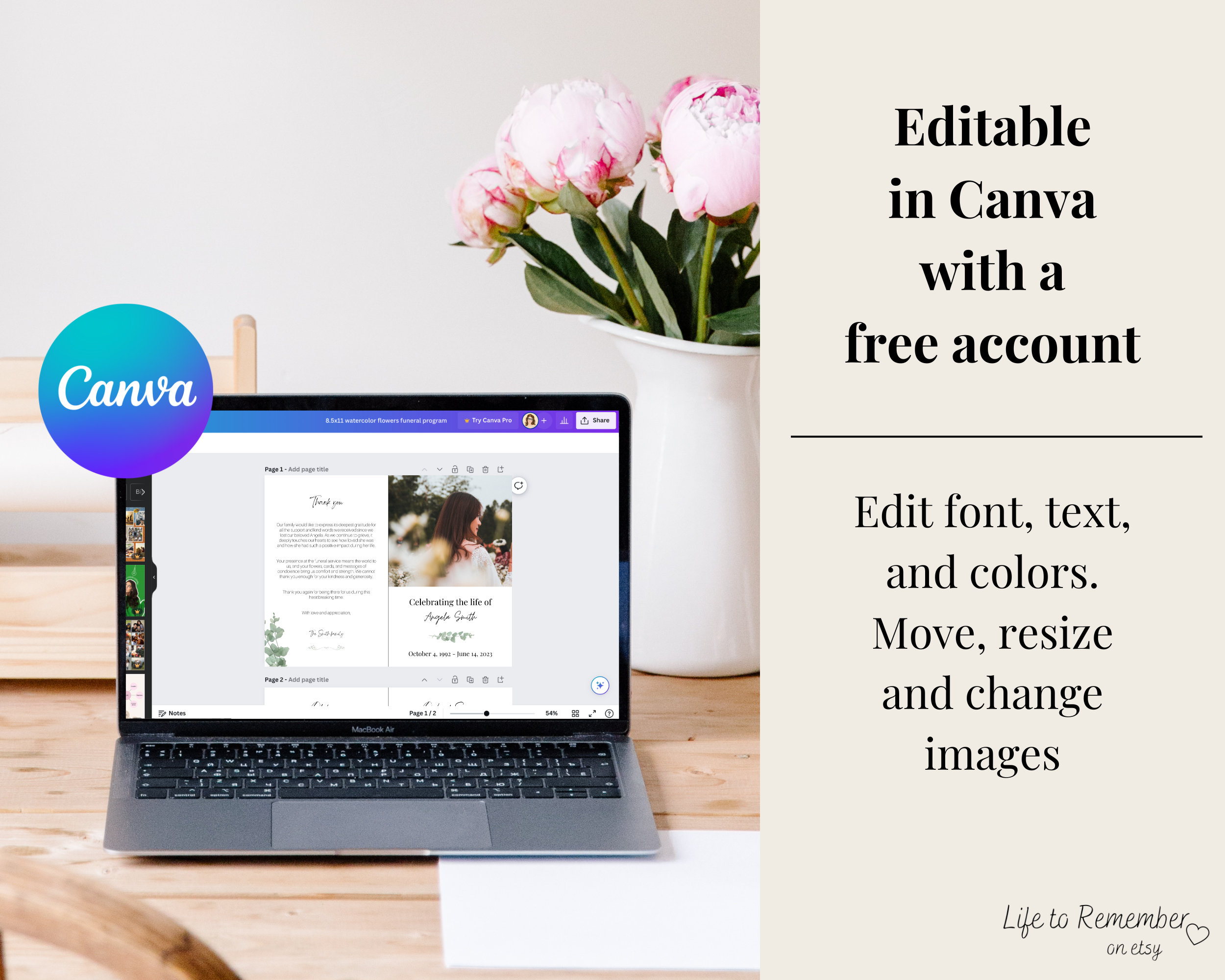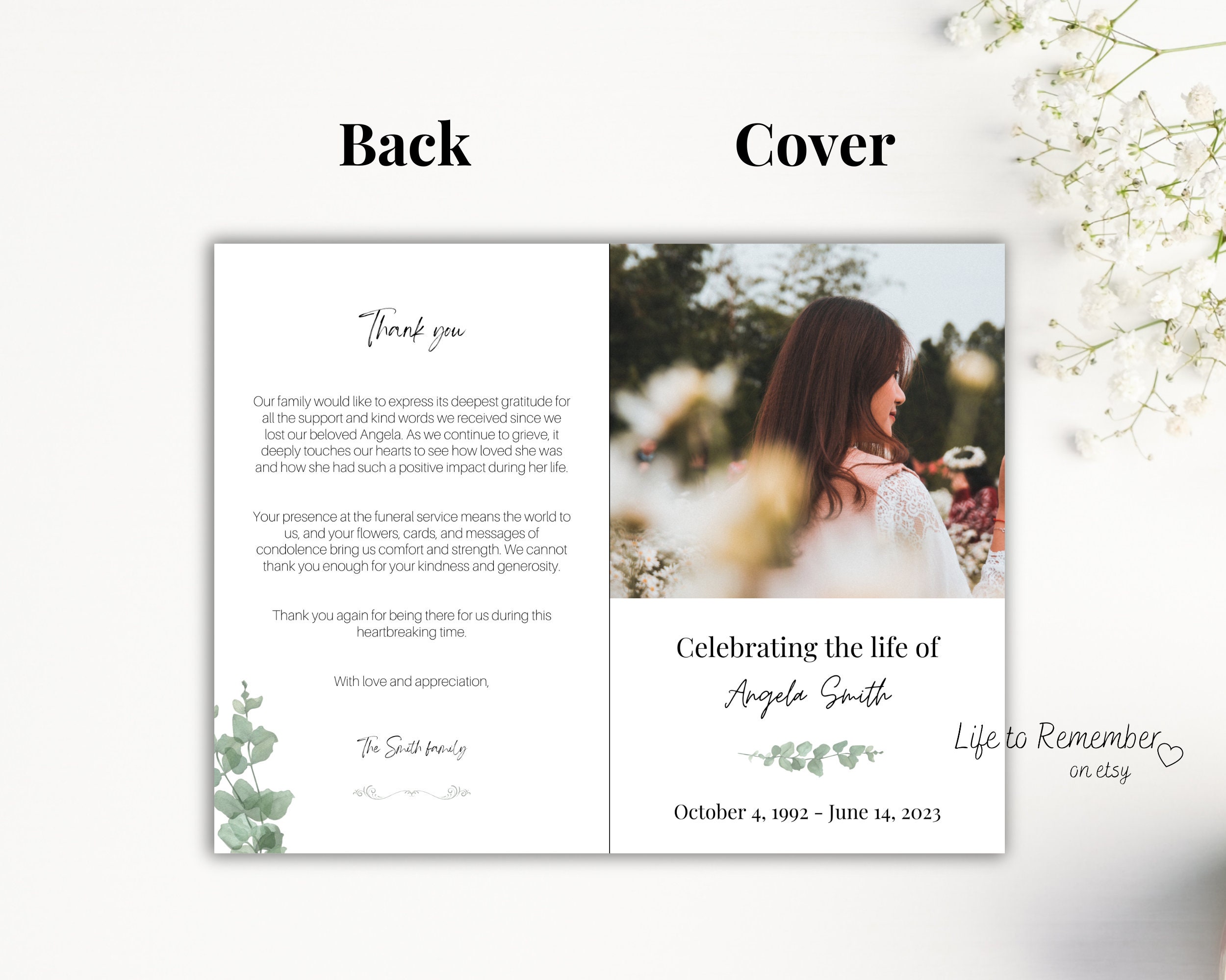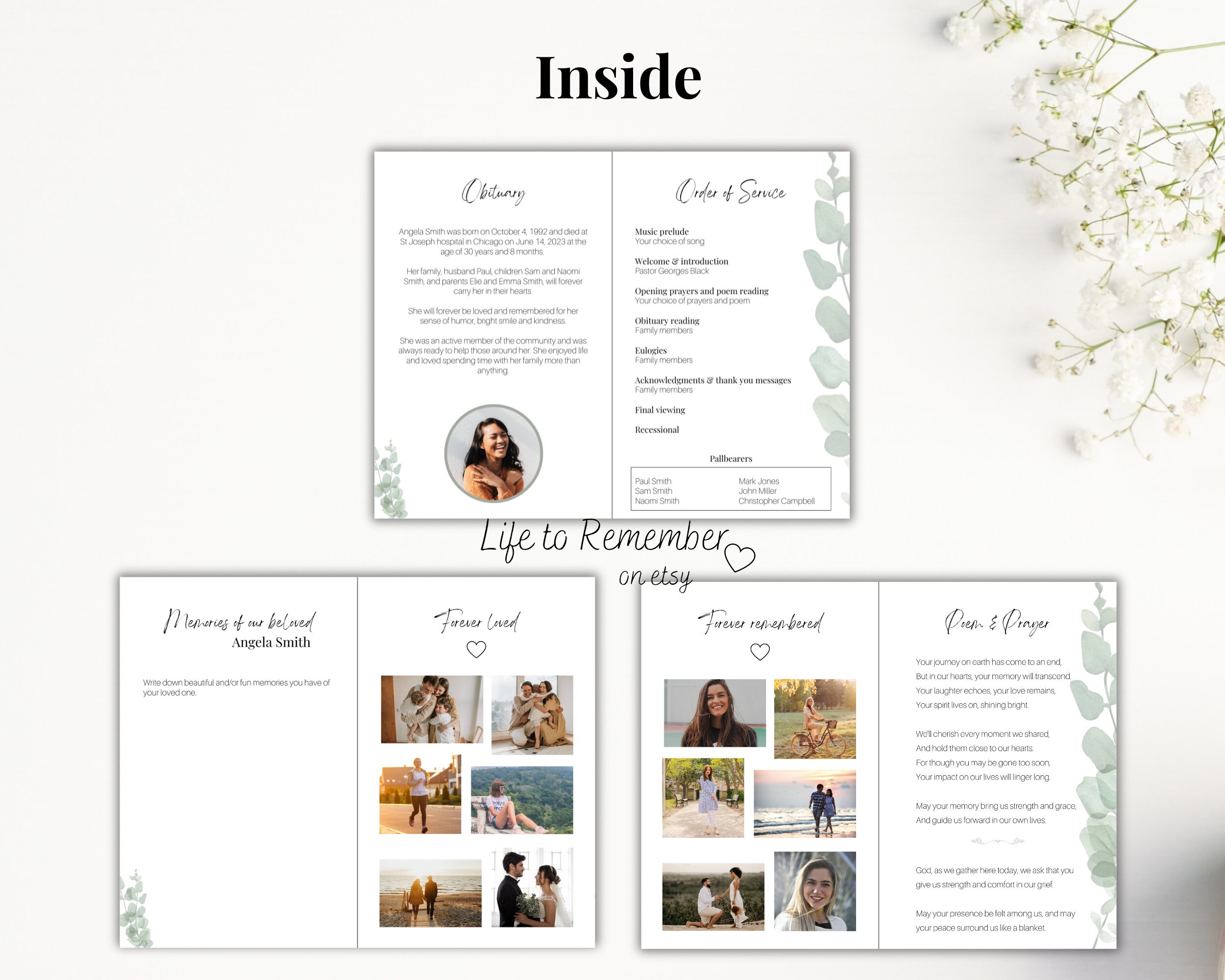 8 Pages Funeral Program Template Editable in Canva Obituary Etsy