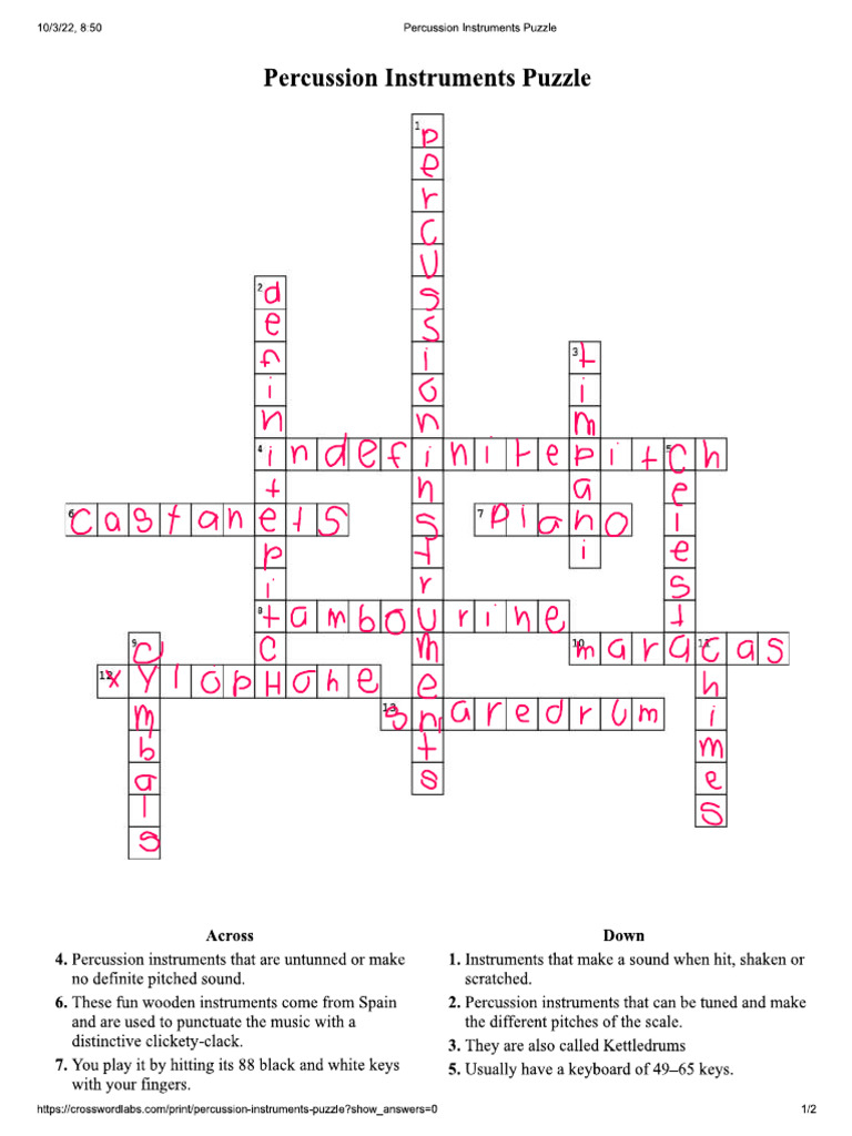 Madeleine Suyapa Lenigan Bautista Percussion Instruments Crossword PDF