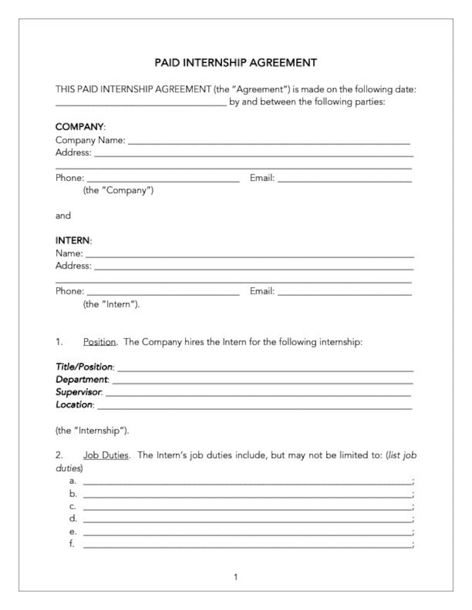 Paid Internship Contract Template Form Fill Out and Sign Printable