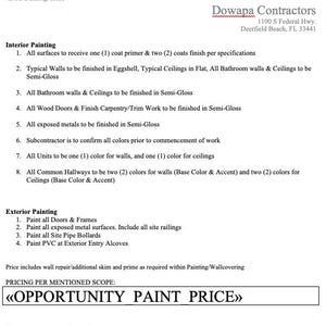 Free Printable Painting Contract Templates PDF Word Interior Exterior