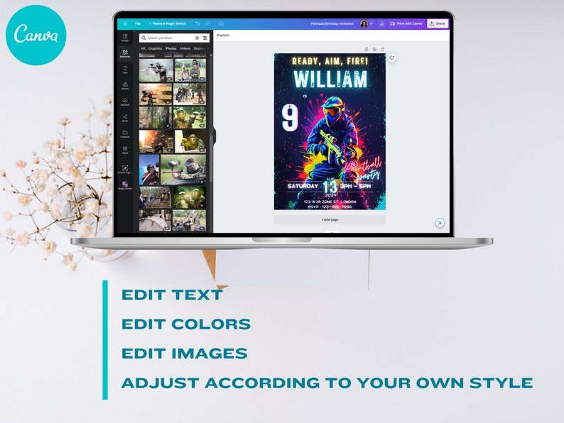 Editable Paintball Invitation Template Printable Paintball Etsy