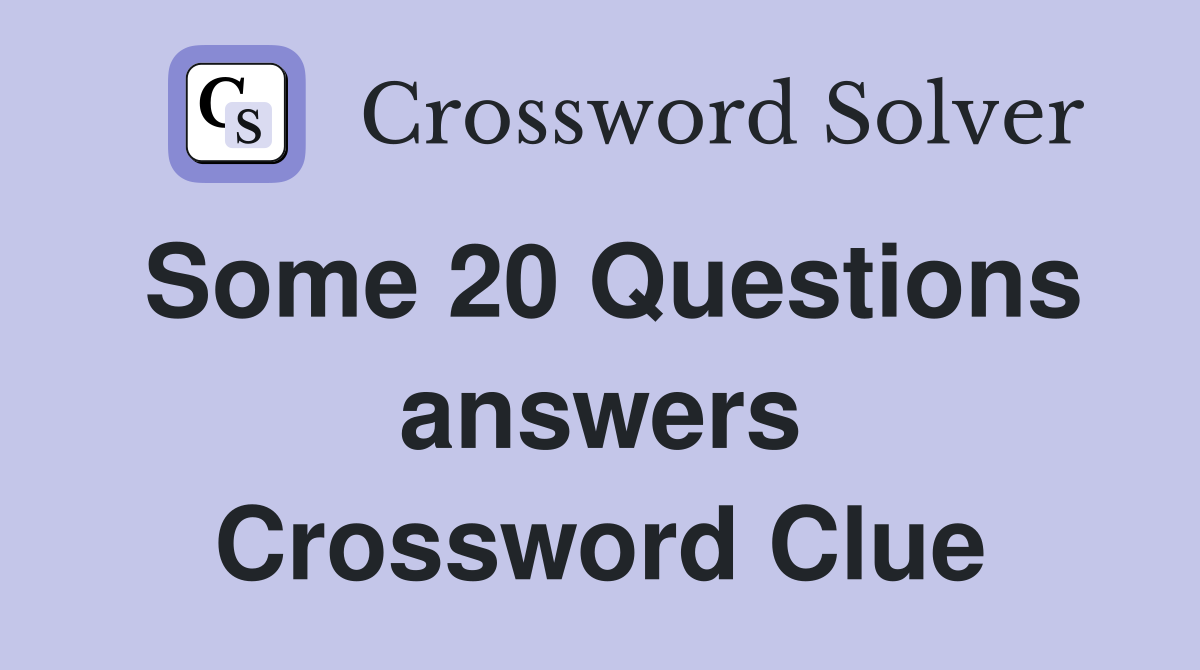 Some 20 Questions answers Crossword Clue Answers Crossword Solver