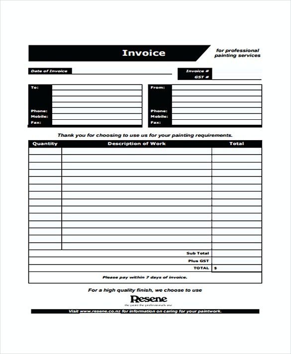 Painters invoice template free herypc