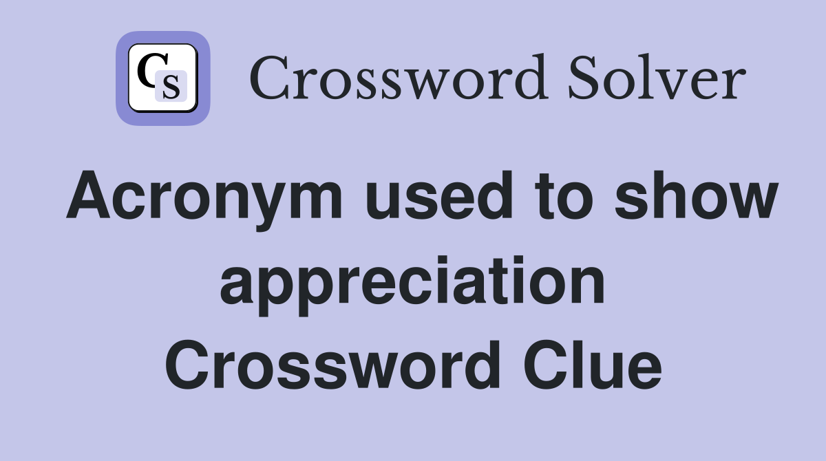 Acronym used to show appreciation Crossword Clue Answers Crossword