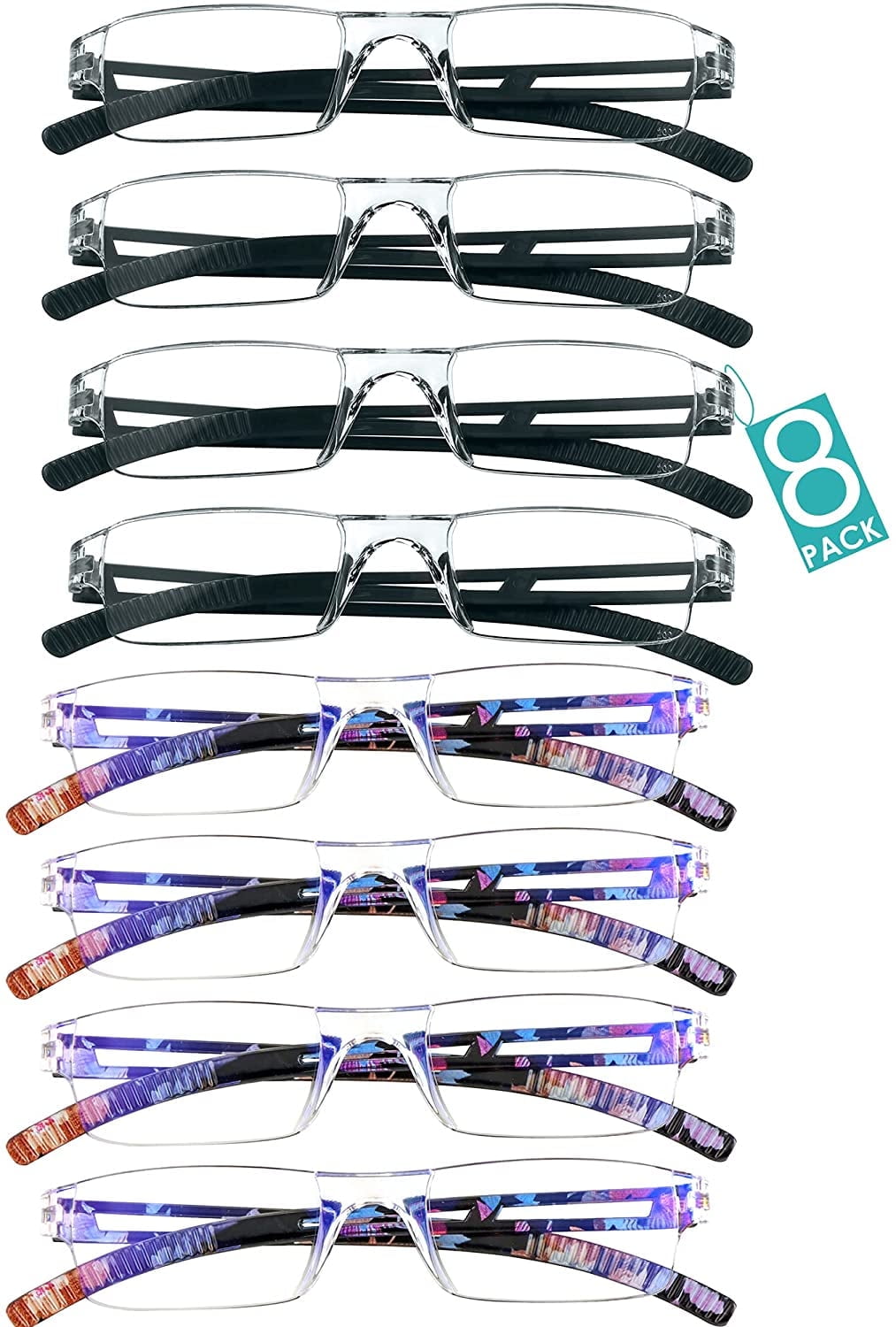 8 Pairs Reading Glasses Blue Light Blocking Glasses Computer Reading
