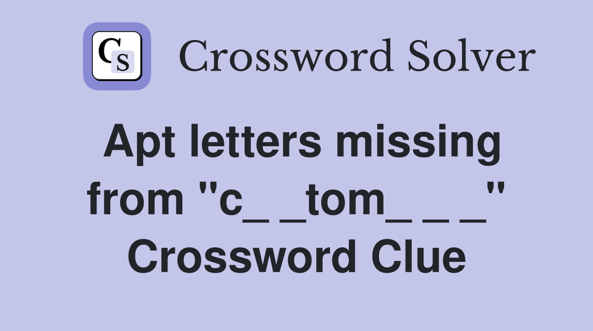 Apt letters missing from quot c tom quot Crossword Clue Answers