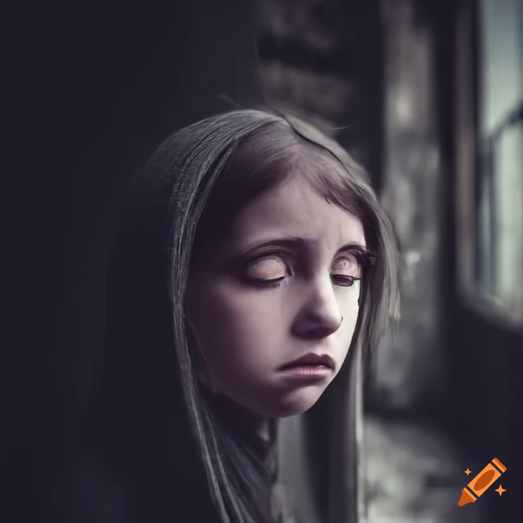 Portrait of a pale girl in a dark dystopian street on Craiyon
