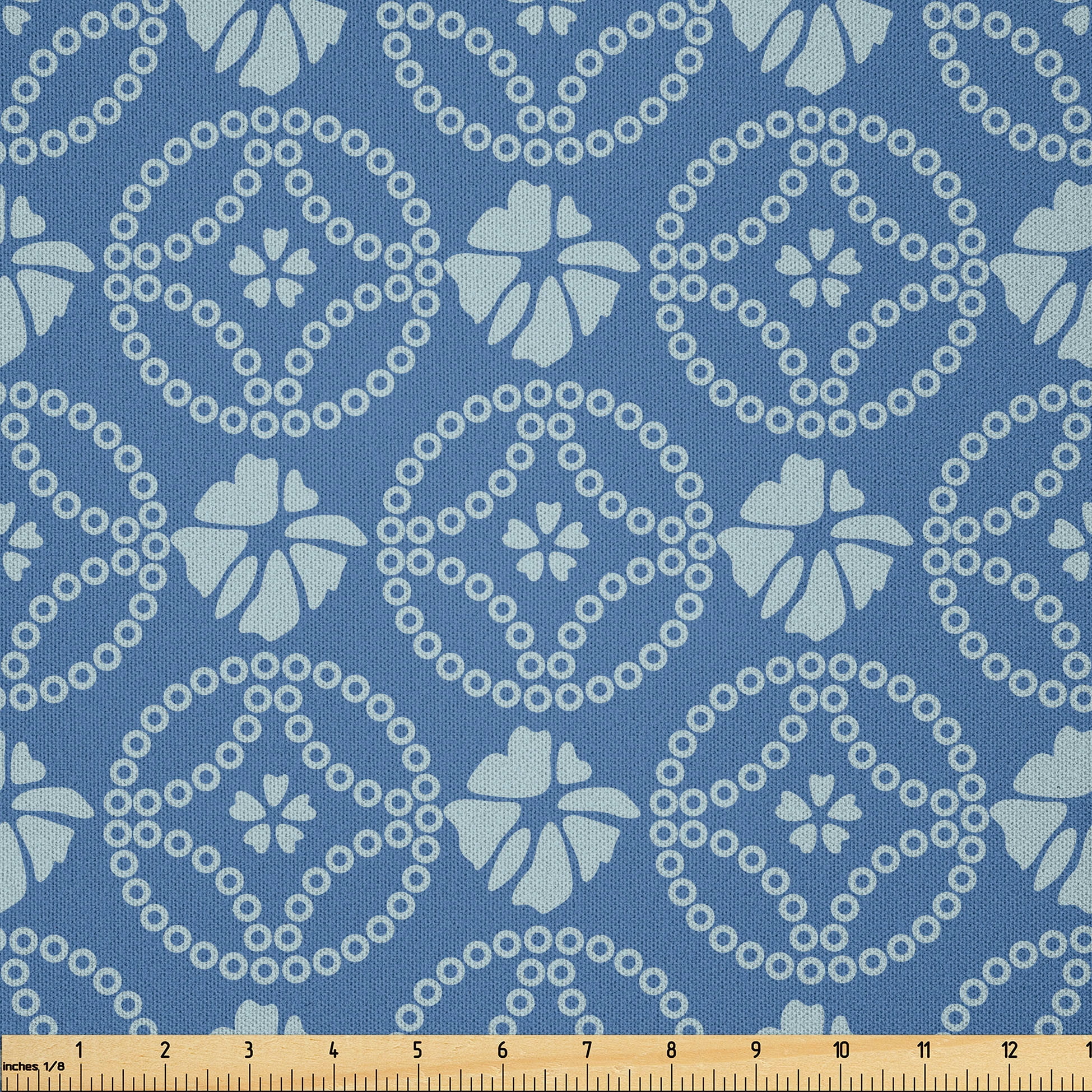 Ambesonne Japanese Fabric by the Yard Microfiber Flowers Circles