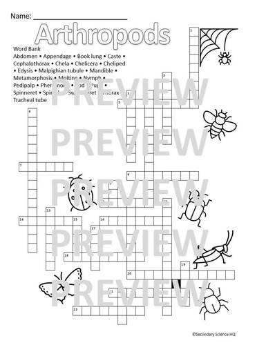 Arthropods Vocabulary Crossword Puzzle Advanced Biology TPT