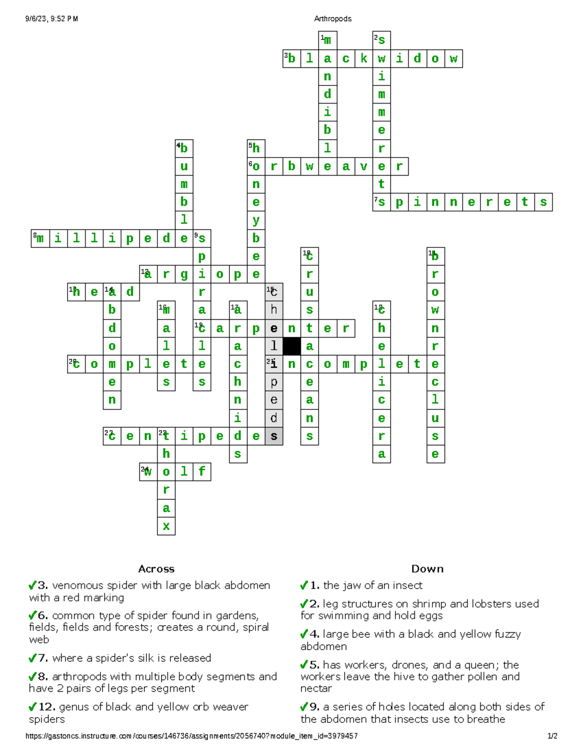 Arthropods Crossword Puzzle 9/6/23 9:52 PM Arthropods Studocu