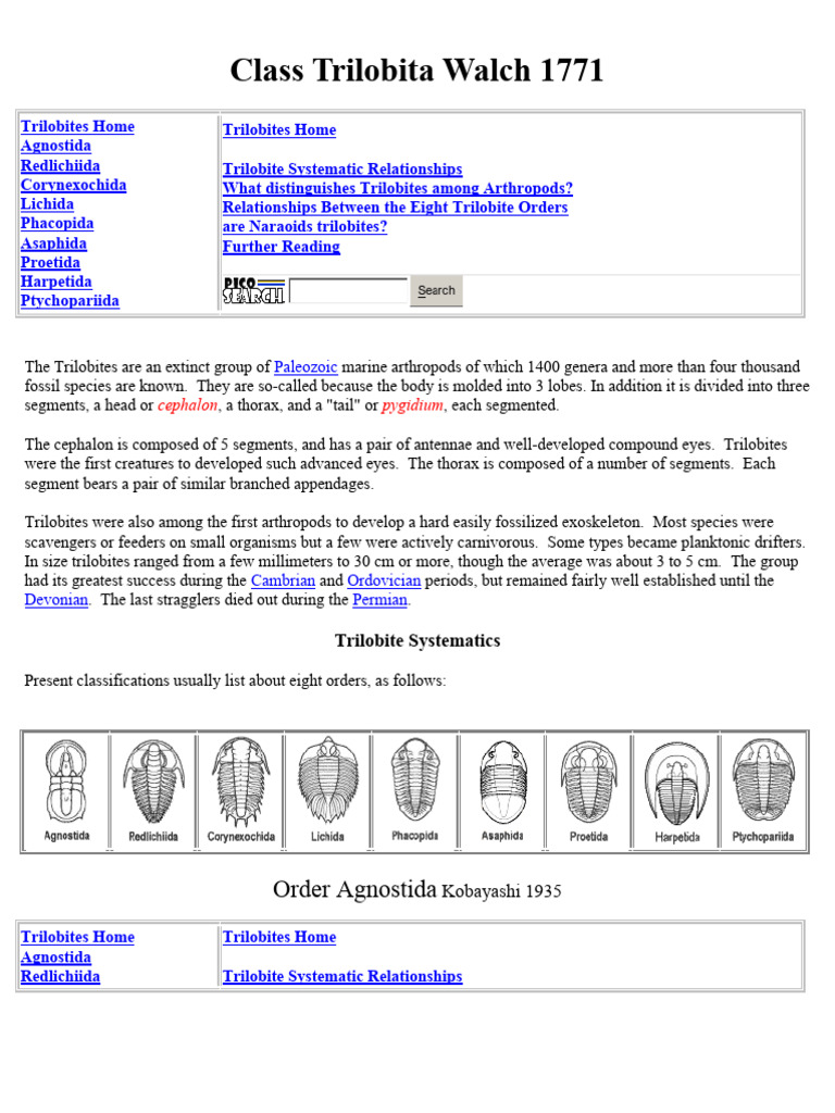 Trilobita PDF Paleozoic First Appearances Arthropods