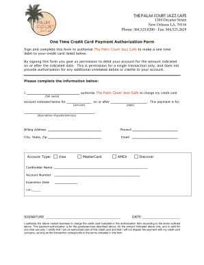 Fillable Online Credit Card Authorization Form The Palm Court Jazz