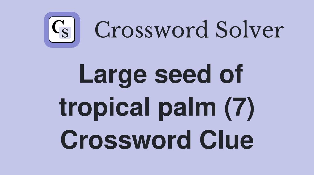 Large seed of tropical palm (7) Crossword Clue Answers Crossword Solver