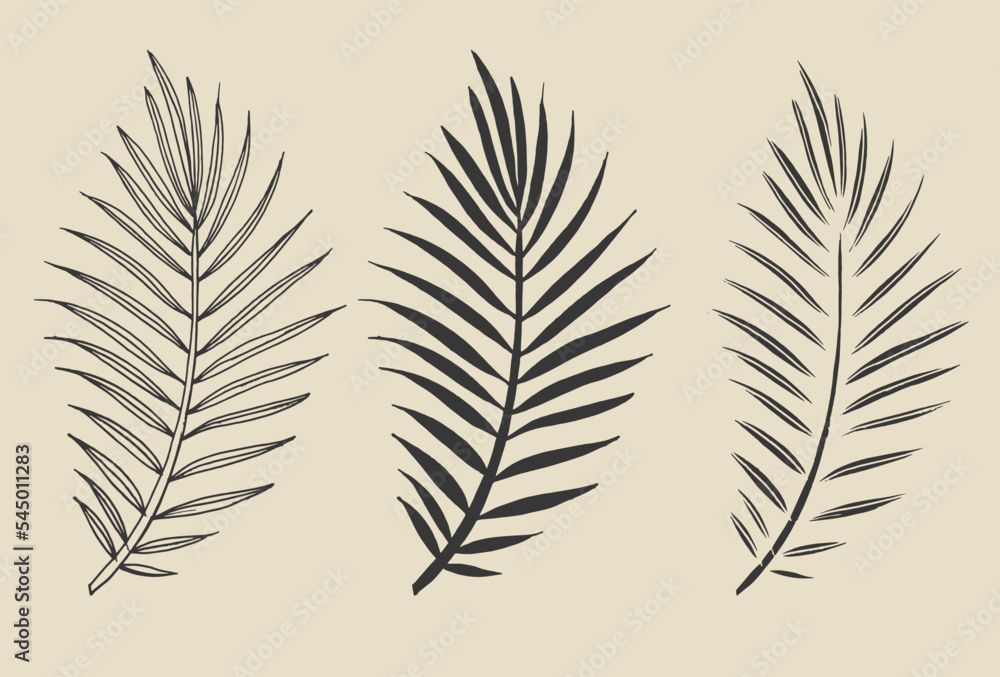 Vector Silhouette Drawing Palm Leaves Template Stock Vector (Royalty