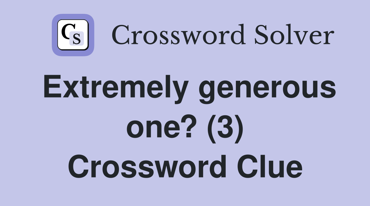 Extremely generous one? (3) Crossword Clue Answers Crossword Solver