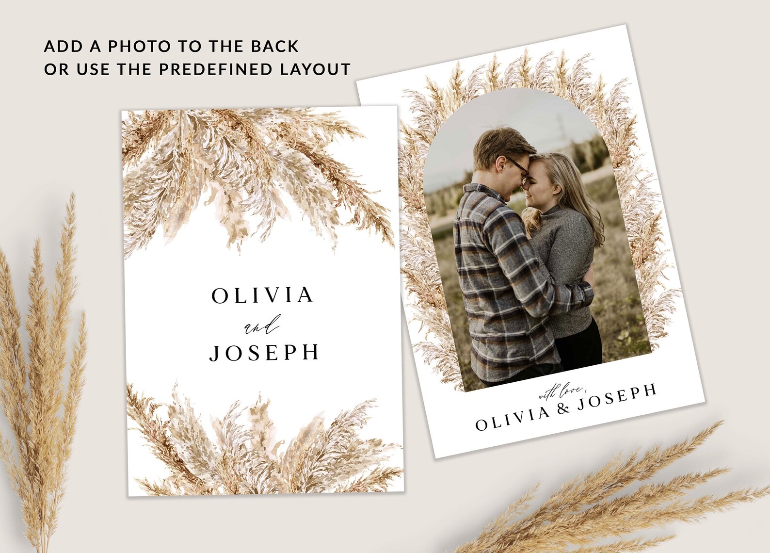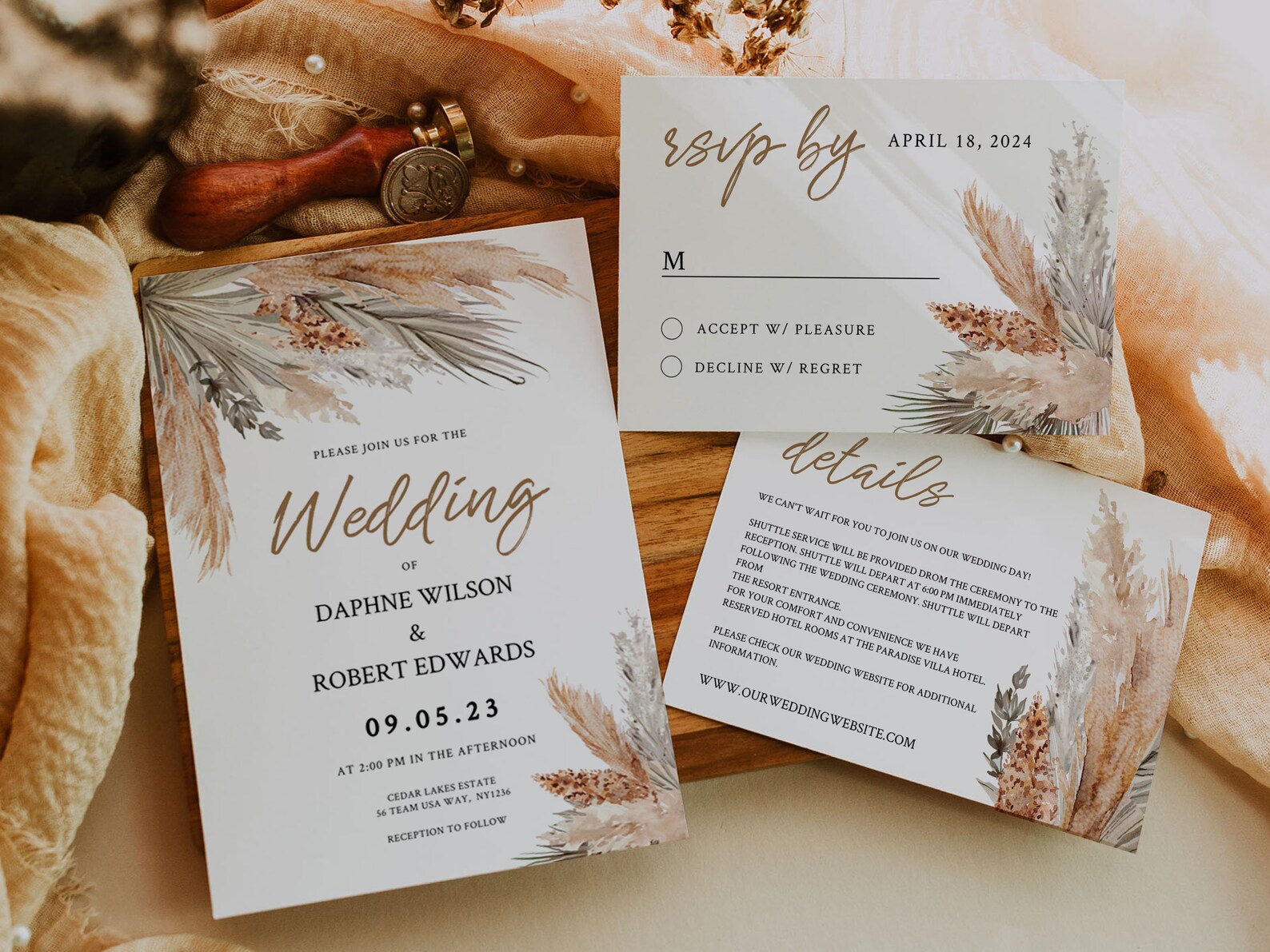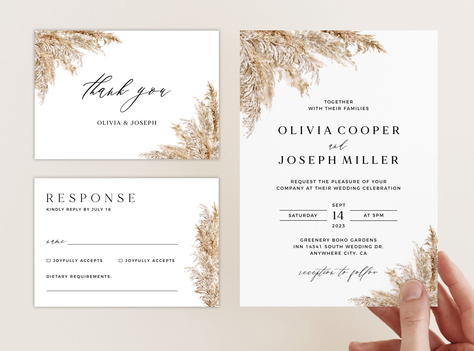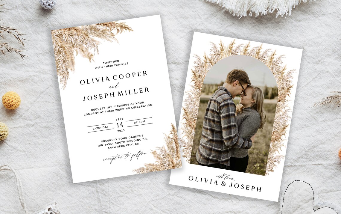 PAMPAS GRASS Wedding Invitation Template Set Printable Boho