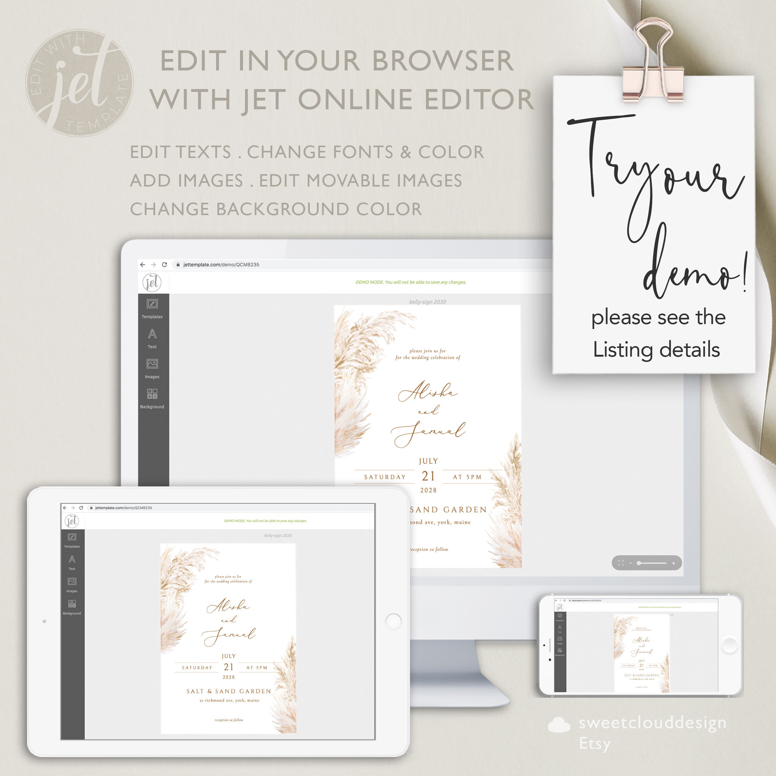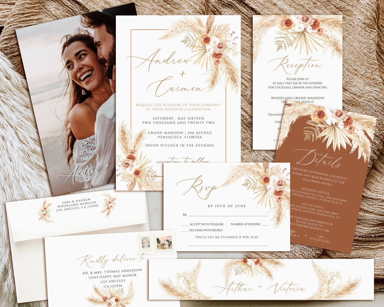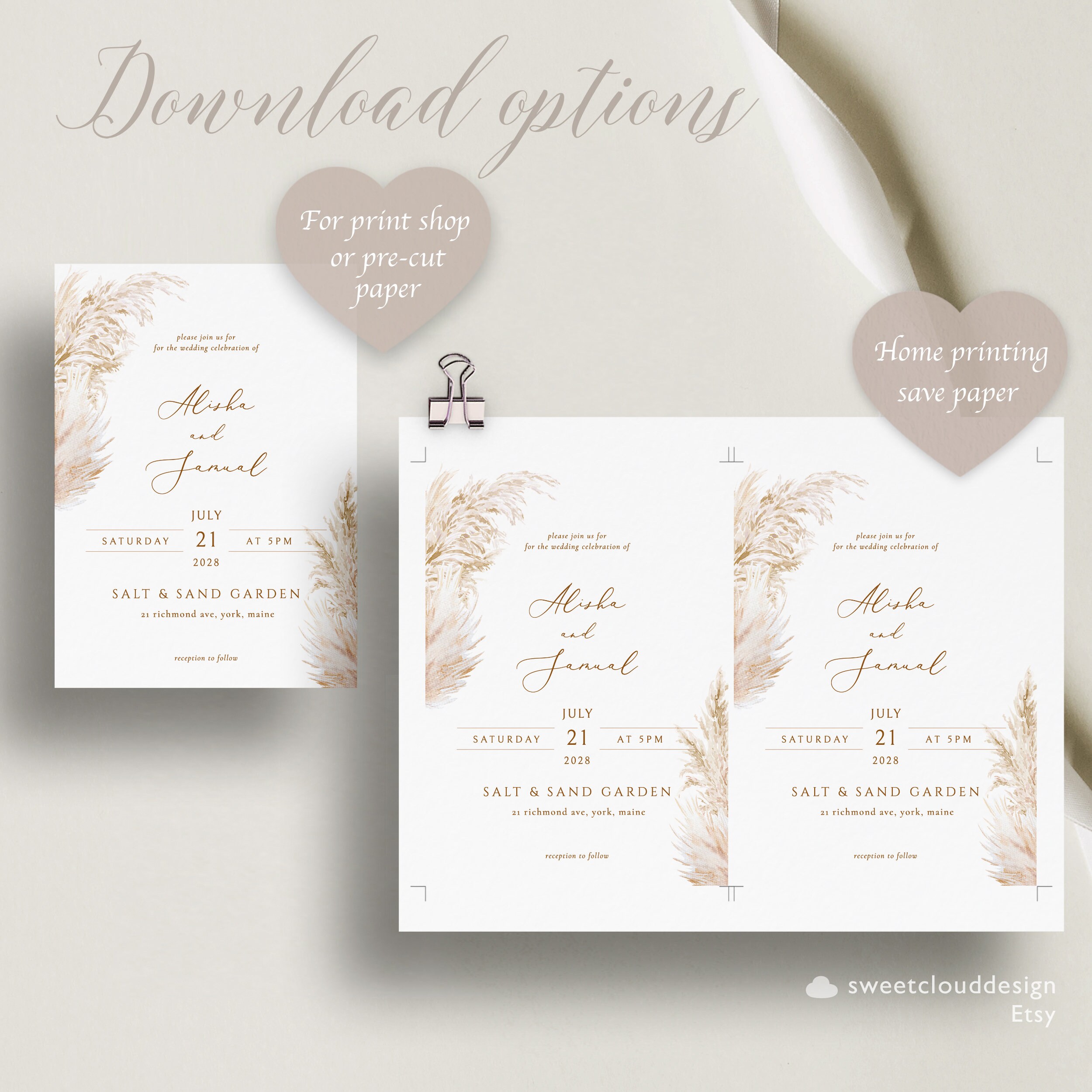 PAMPAS GRASS Wedding Invitation Template Set Printable Boho