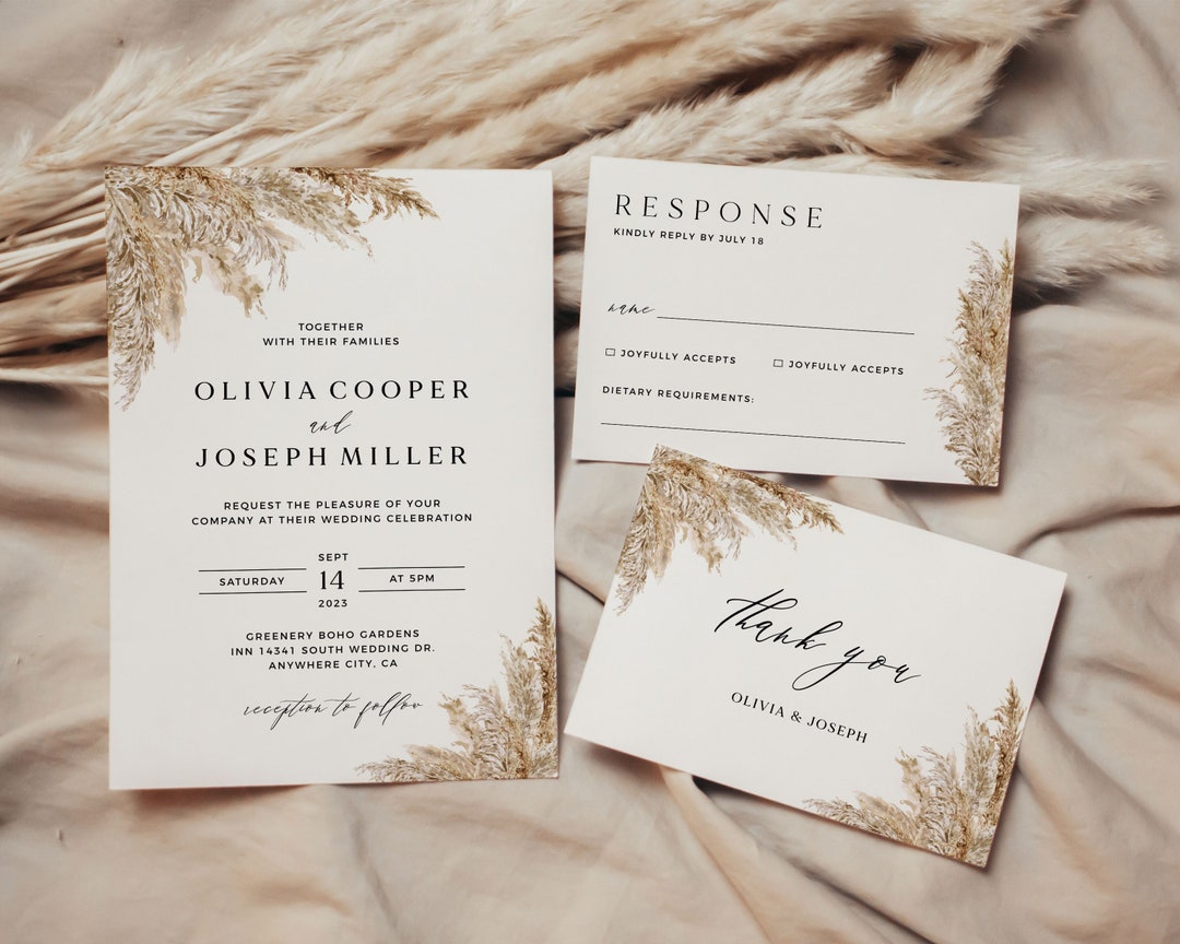 Pampas Grass Wedding Invitation Template Set Invitation Set Pampas