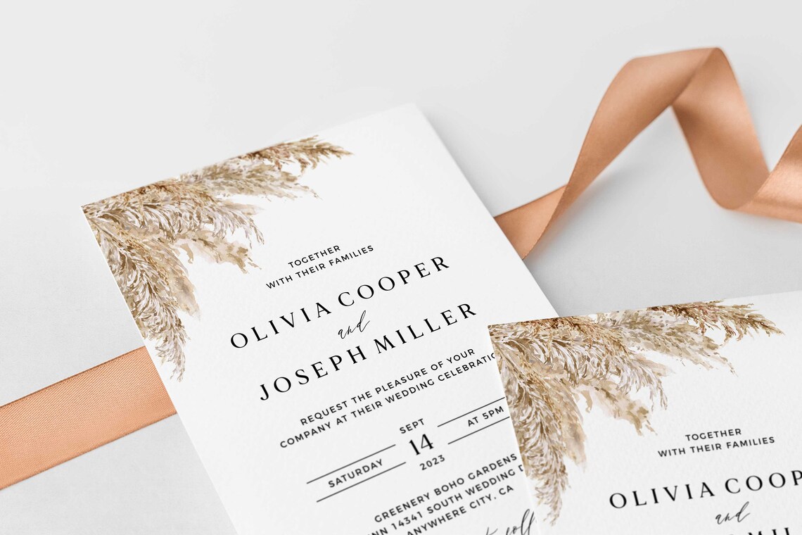 PAMPAS GRASS Wedding Invitation Template Printable Etsy