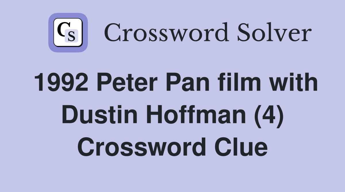 1992 Peter Pan film with Dustin Hoffman (4) Crossword Clue Answers
