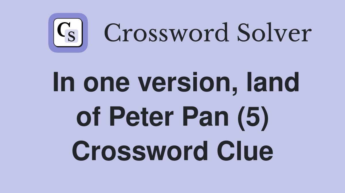 In one version land of Peter Pan (5) Crossword Clue Answers