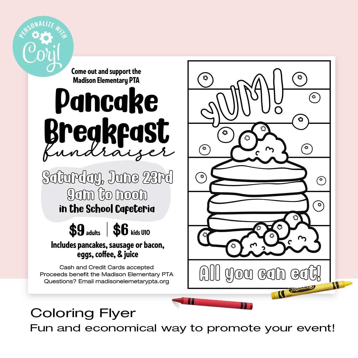 Pancake Breakfast Flyer Template • Coloring Sheet Pancake Fundraiser