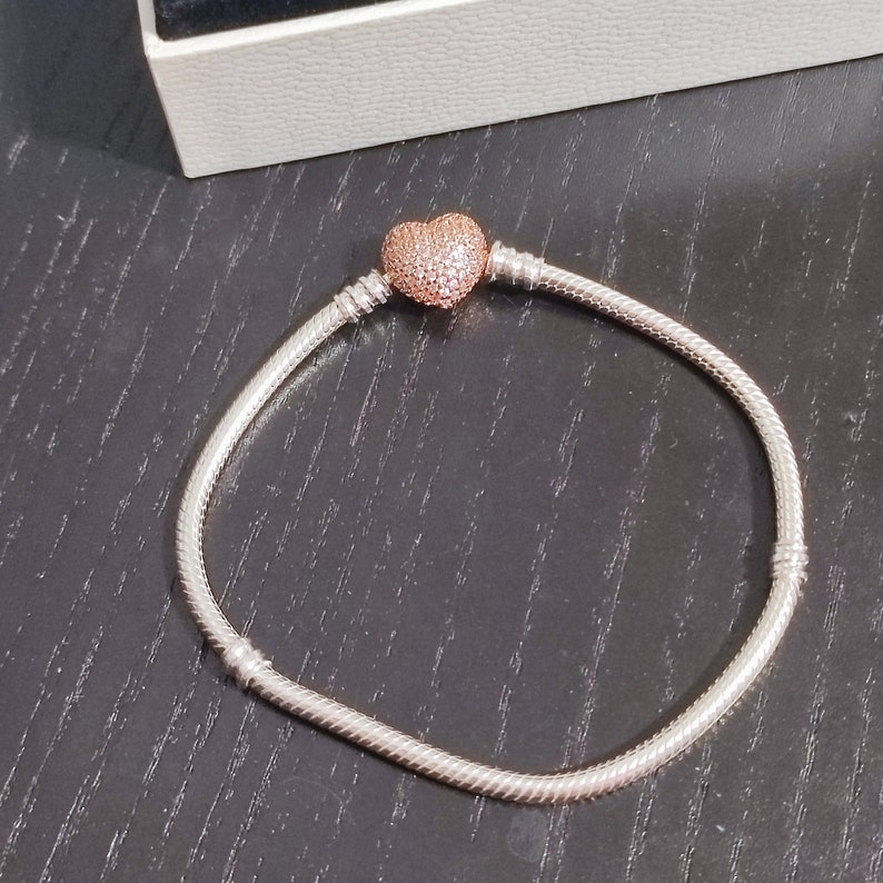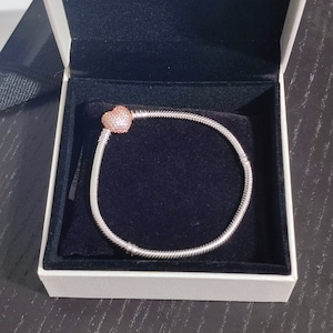 Authentic Pandora Moments Snake Chain Bracelet With Pave Heart Rose