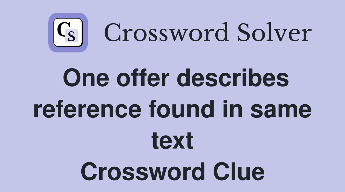 One offer describes reference found in same text Crossword Clue