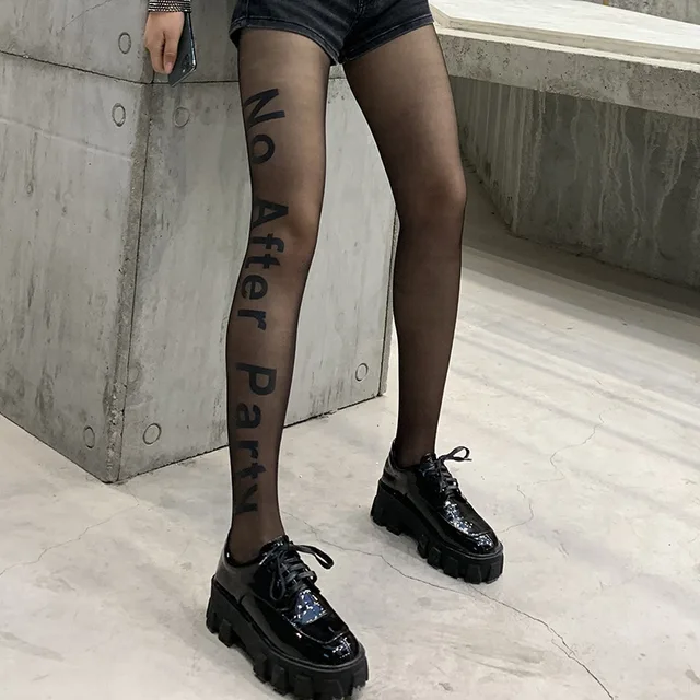 Fashion Women BlackPantyhose Letter Printed Nightclub Party