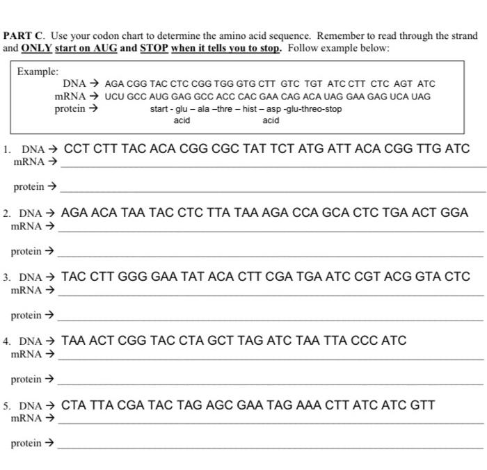 Solved PART C Use your codon chart to determine the amino Chegg com
