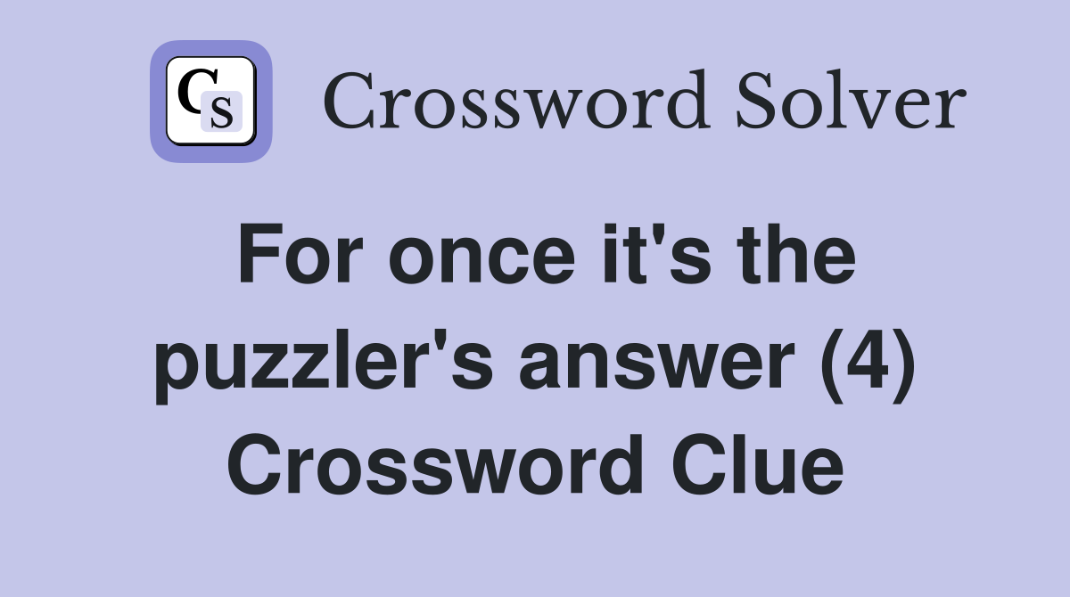 For once it #39 s the puzzler #39 s answer (4) Crossword Clue Answers
