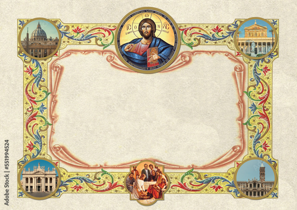 Papal Blessing Parchments Roman Catholic Church Certificate Stock Photo
