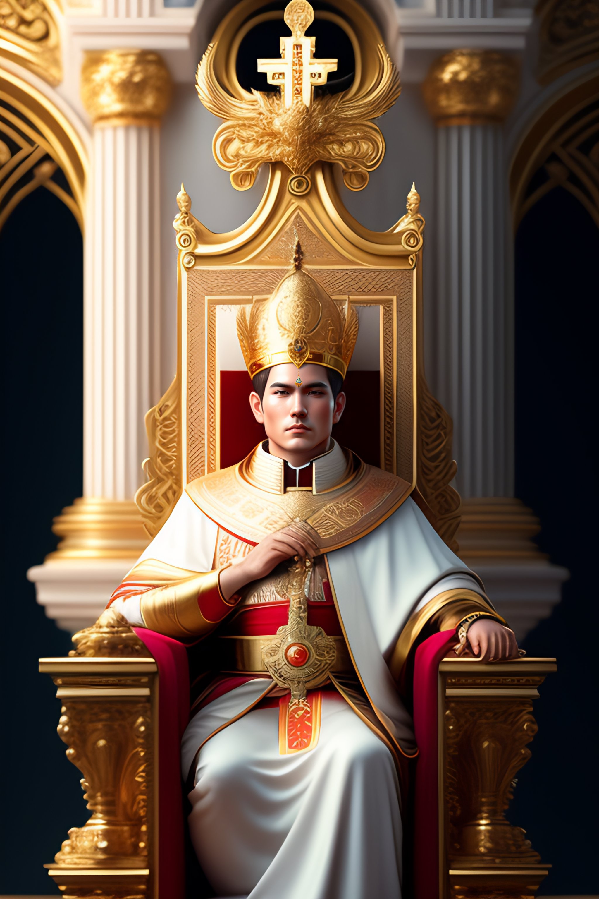 Lexica Old ancient pope wearing papal tiara sitting in a throne