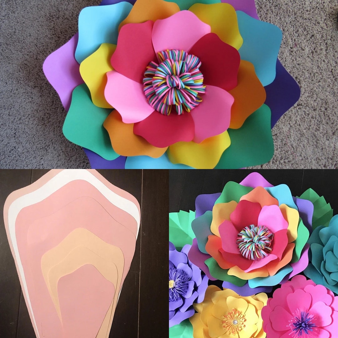 Pdf printable paper flower template large flower svg template etsy