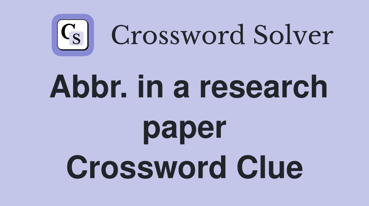 Abbr in a research paper Crossword Clue Answers Crossword Solver