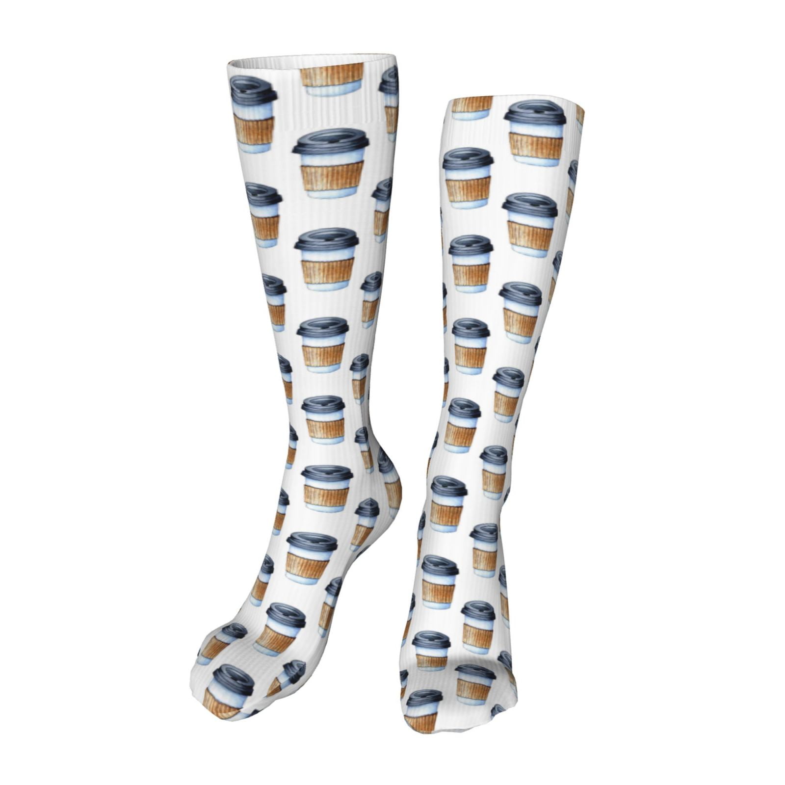 Adobk Coffee To Go Pattern Print Knee High Socks Athletic Tube Socks